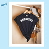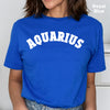 The blue varsity font shirt features a classic and sporty design, with the word "Aquarius" emblazoned in bold white letters across the front, set against a blue background, available in 4 blue colors, perfect for a casual yet stylish look to show off your zodiac sign.