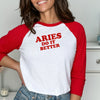 A stylish spin on the classic ¾ inch baseball raglan sleeve. The combed cotton blend makes it super soft, comfortable, and lightweight. This high-quality shirt is the perfect way to display your Aries-ness with pride. This fashionable T shirt is made of soft and durable material, that’s not only comfortable to wear but also designed to last. It’s the perfect addition to your wardrobe. Whether you're pairing it with jeans, leggings, shorts, a skirt or layering it under a jacket, this tee is versatile and easy to style for any occasion – dress it up or down.