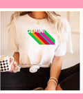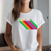 This zodiac sign shirt captures the essence of the 70s with Gemini shown with colorful and vibrant rainbow drop shadow effect, creating a playful and nostalgic aura. It's a captivating fusion of retro aesthetics and zodiac symbolism, perfect for those who embrace both groovy vibes and cosmic connections.