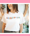 Transport yourself to the funky 70s with this groovy pastel zodiac shirt, adorned with the phrase "Scorpio-ish" to showcase your zodiac sign. The "Scorpio-ish" shirt a exudes a retro charm and adds a touch of cosmic playfulness, making it a stylish and unique piece for any zodiac enthusiast.